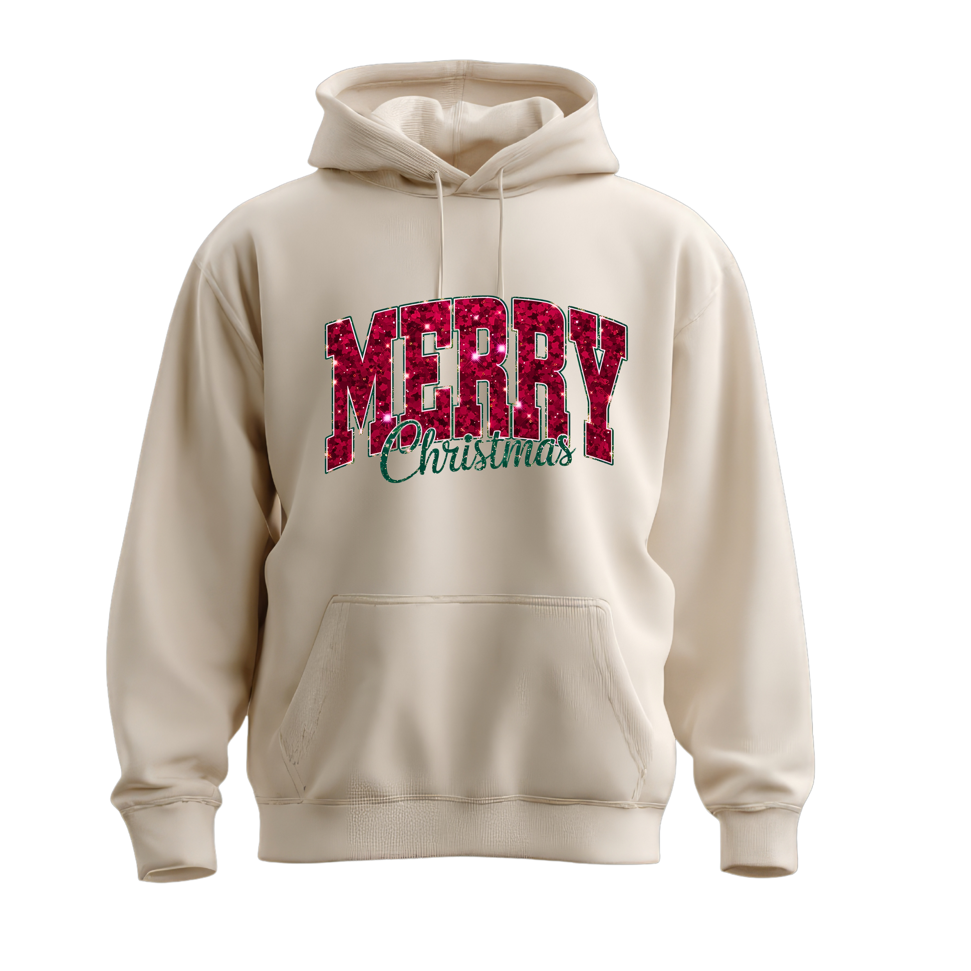 Merry Christmas Glitter Hoodie – Festive Holiday Sparkle Pullover, Cozy Christmas Sweatshirt, Winter Gift